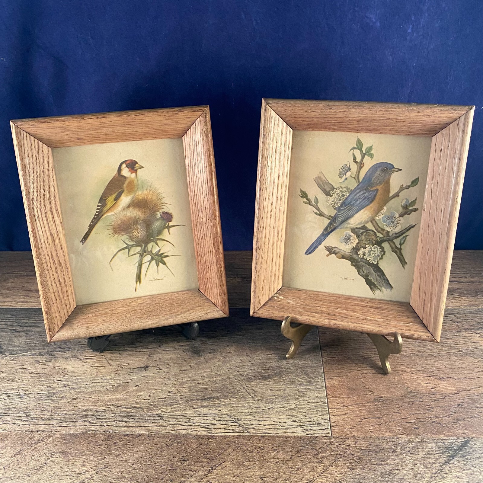 Pair of Vintage PH Gonner Bird Prints Framed Redhead Finch Bluejay