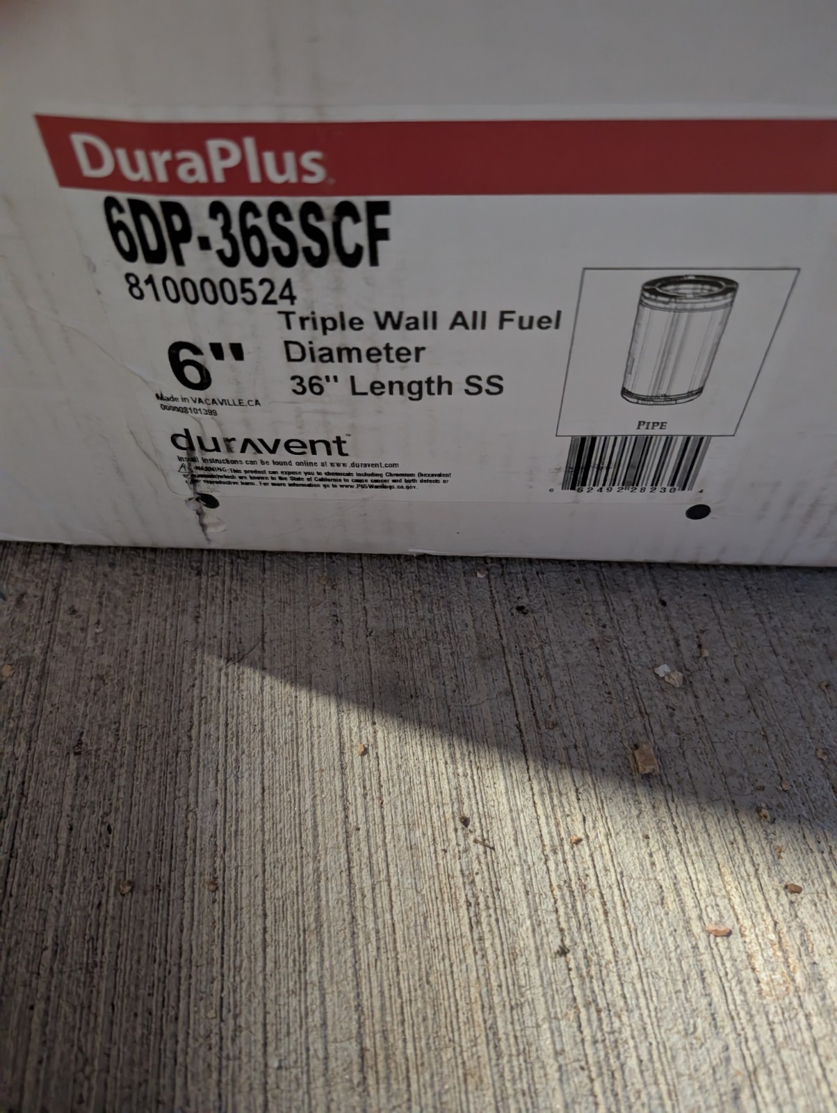 Triple wall stainless steel triple wall stove pipe by duravent. Has dents in it as shown in pictures. Pipe is still very usable just not as pretty as a new perfect one. This one is cheap because of the dents.