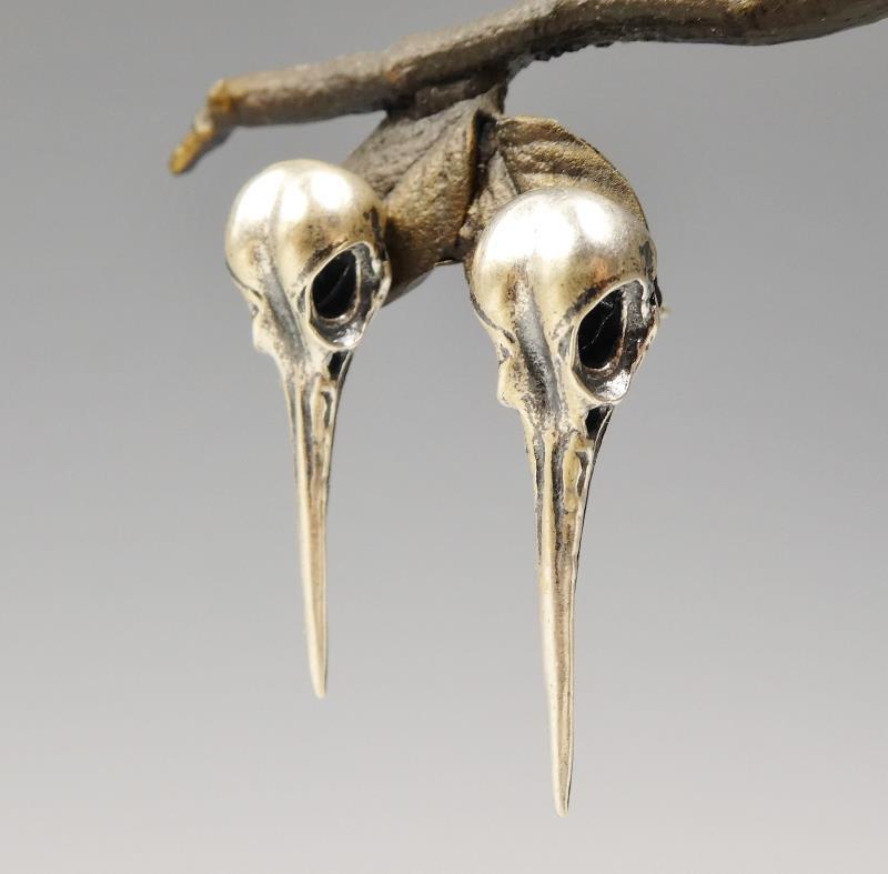 Add character to your look with these handmade sterling silver hummingbird skull studs! Amazing details! The surface is slightly oxidized to create depth and texture. Designed and handmade by "Dark Dream".