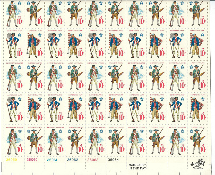 Scott # 1565/8...10 Cent ..Continental Military...Sheet with 50 Stamps