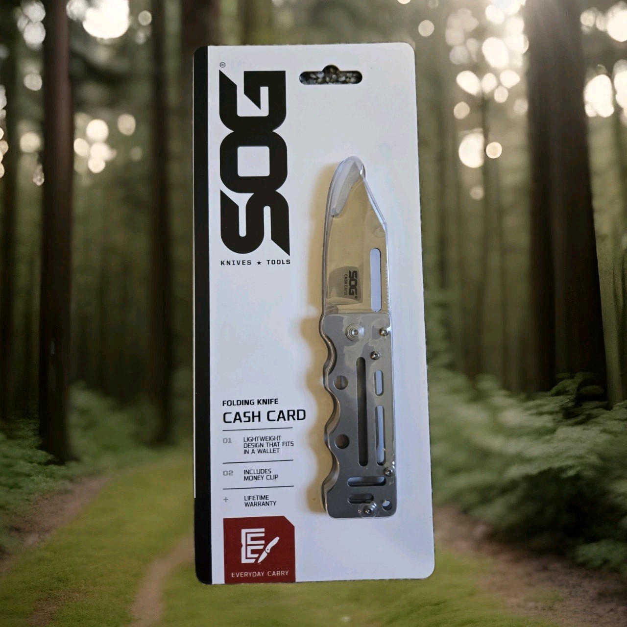 The SOG Cash Card Folding Knife is a practical and versatile tool that combines a stainless steel blade with a money clip for added convenience. With a sleek silver color and a clip point blade, this pocketknife is perfect for everyday carry. The manual opening mechanism and frame lock ensure durability and reliability, while the ambidextrous design caters to both left and right-handed users. This original Cash Card model from SOG is a modern folding knife that is both functional and stylish, making it a valuable addition to any knife collection.
