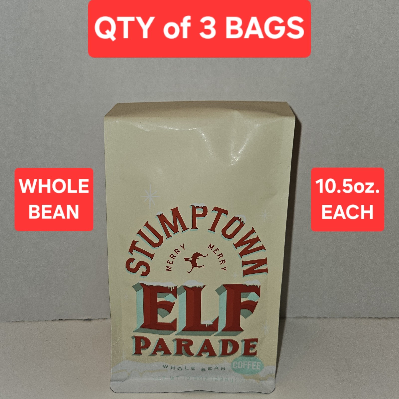We are selling a THREE (3) bags of 10.5-ounce WHOLE BEAN Stumptown Merry Merry ELF PARADE Coffee. ALL (3) bags were ROASTED ON: 9/9/2025 and are BEST BY: 6/6/2026.