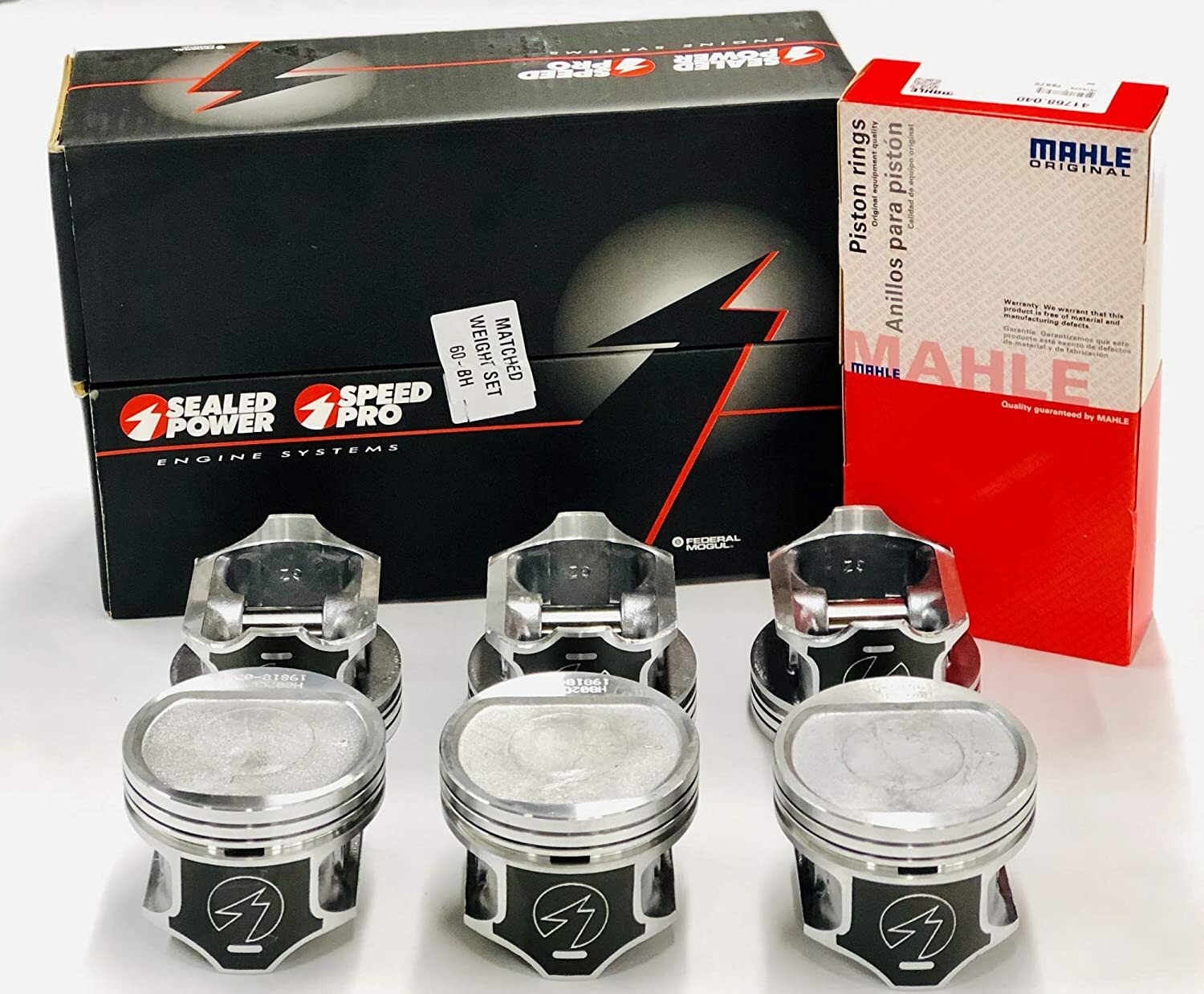 This item is for six (6) STANDARD bore Sealed Power hypereutectic pistons and a cast piston ring set (Hastings/MAHLE) for 1996-2006 Jeep 4.0L 6-cylinder engines. P/N (6) H802CP-STD + 51870CP-STD. Piston Material: Hypereutectic aluminum.