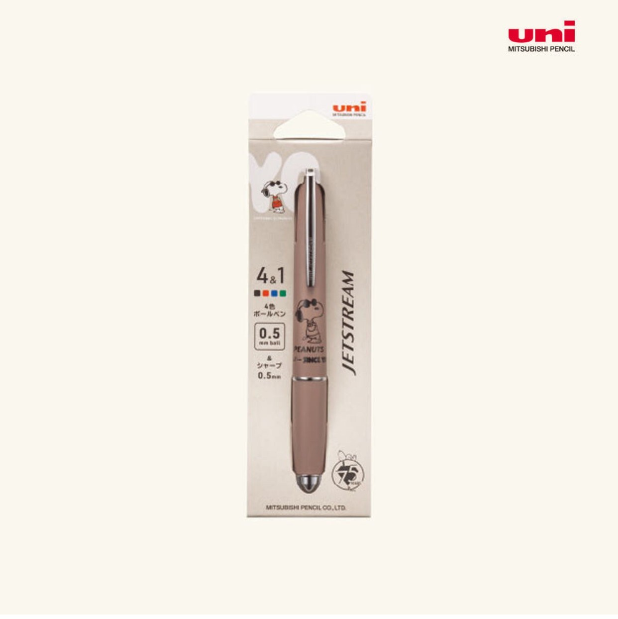 Uni-ball Jetstream Peanuts Collaboration. Jetstream Peanuts Multi Pen. Jetstream 4+1 Ballpoint Pen. Upgrade your writing experience with theJetstream Peanuts Collaboration 4+1 Multi Pen. This exclusive limited-edition pen features iconic Peanuts characters like Snoopy and Charlie Brown, combining style and functionality in one premium tool.