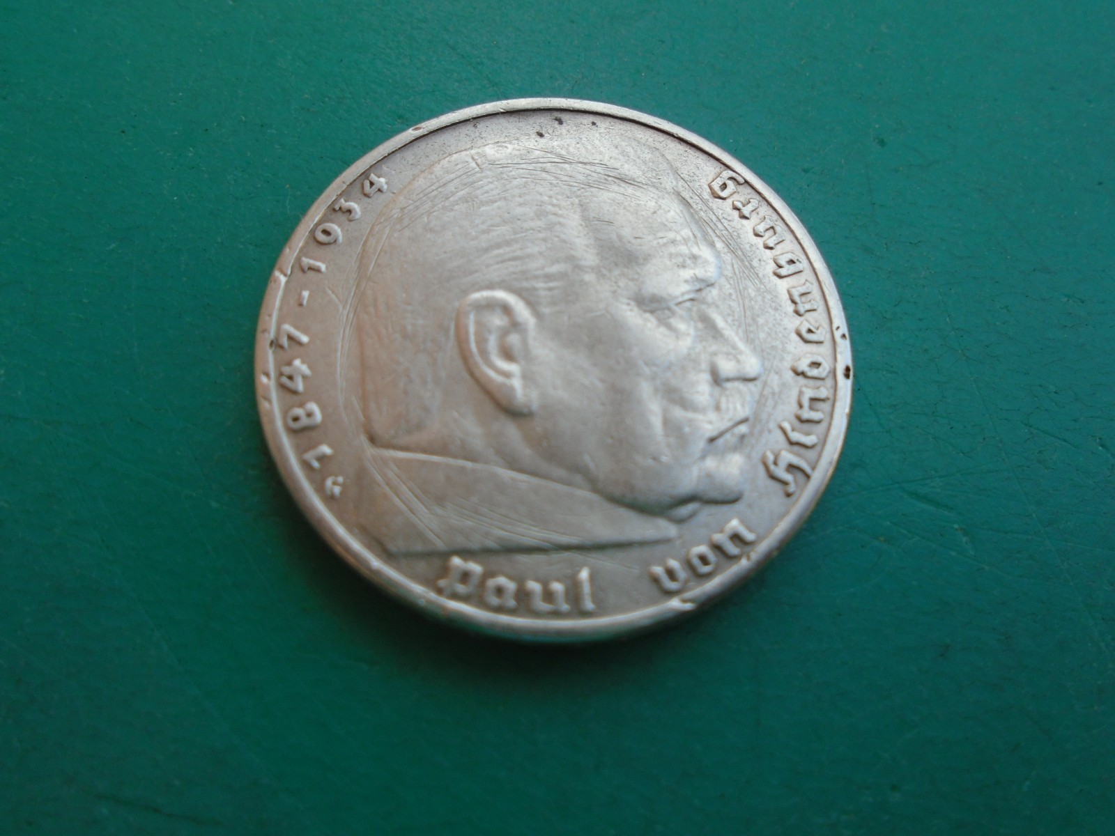 1936 G GERMANY 5 MARK COIN - Third Reich - SILVER German HAS SCRATCHES ON BACK
