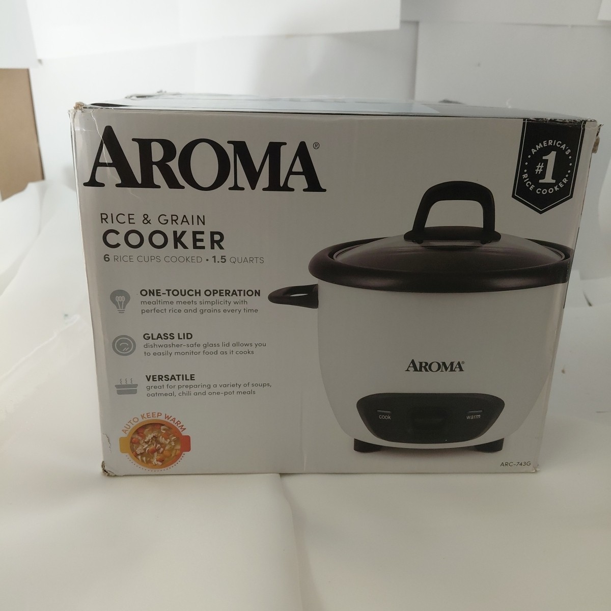 Aroma Housewares Aroma 6-cup Cooker 1.5 Qt. One Touch Rice Cooker, Open BOX