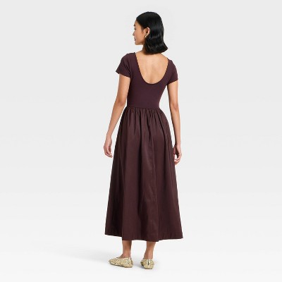 On sale • save 73%•Short-sleeve backless knit dress •Recycled polyester sateen fabric •Scoop back •Side pocket •Maxi length Description Embrace casual-chic style with this Backless Knit Maxi Dress from A New Day. Made from recycled polyester sateen fabric, this short-sleeve maxi dress keeps you moving through the day in absolute comfort. The scoop back adds a cool touch, while a side pocket offers space for stashing small on-the-go essentials.