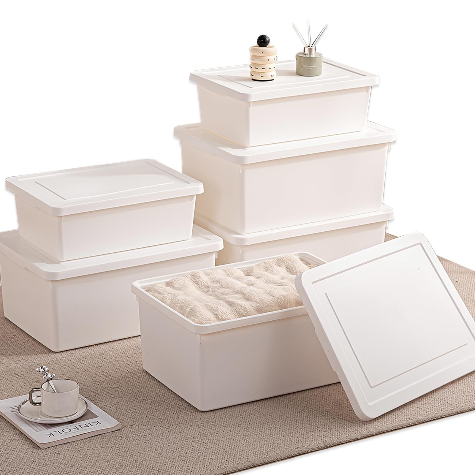 (4XXL+2L) 6gal+3gal Large capacity White multifunction storage bin with lid, ...