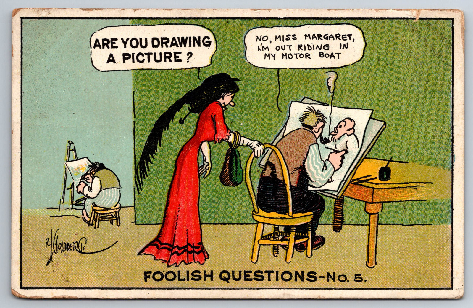 Vintage Postcard Humor Funny Cartoon Foolish Questions Painting c1913 ~8041