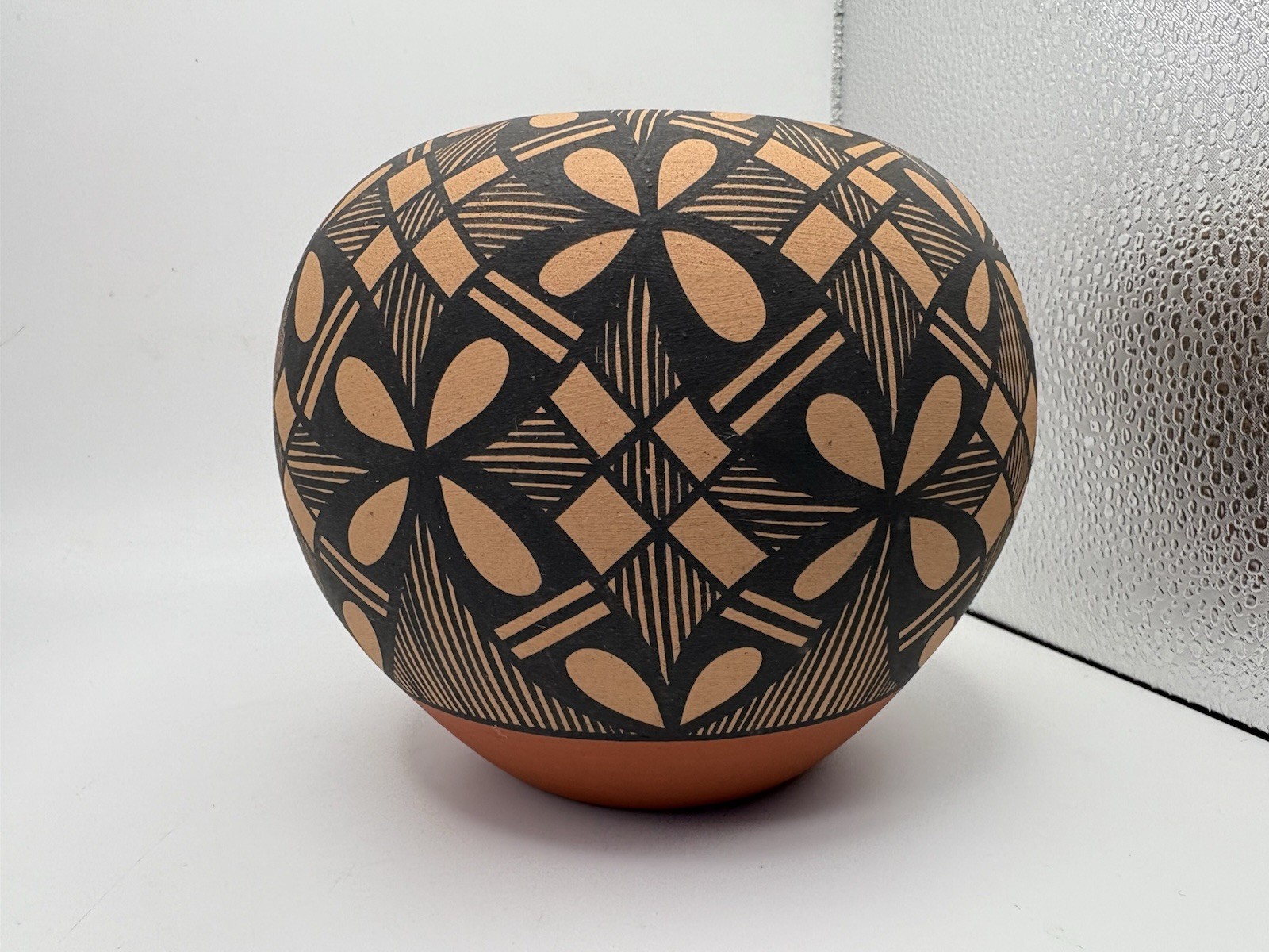 Native American Jemez Pueblo pottery clay pot bowl vase Measures 5 inches in diameter and 4.5 inches tall Signed M. Waq. Jemez Good pre owned condition, part of a larger estate collection See photos and feel free to ask questions Thank you