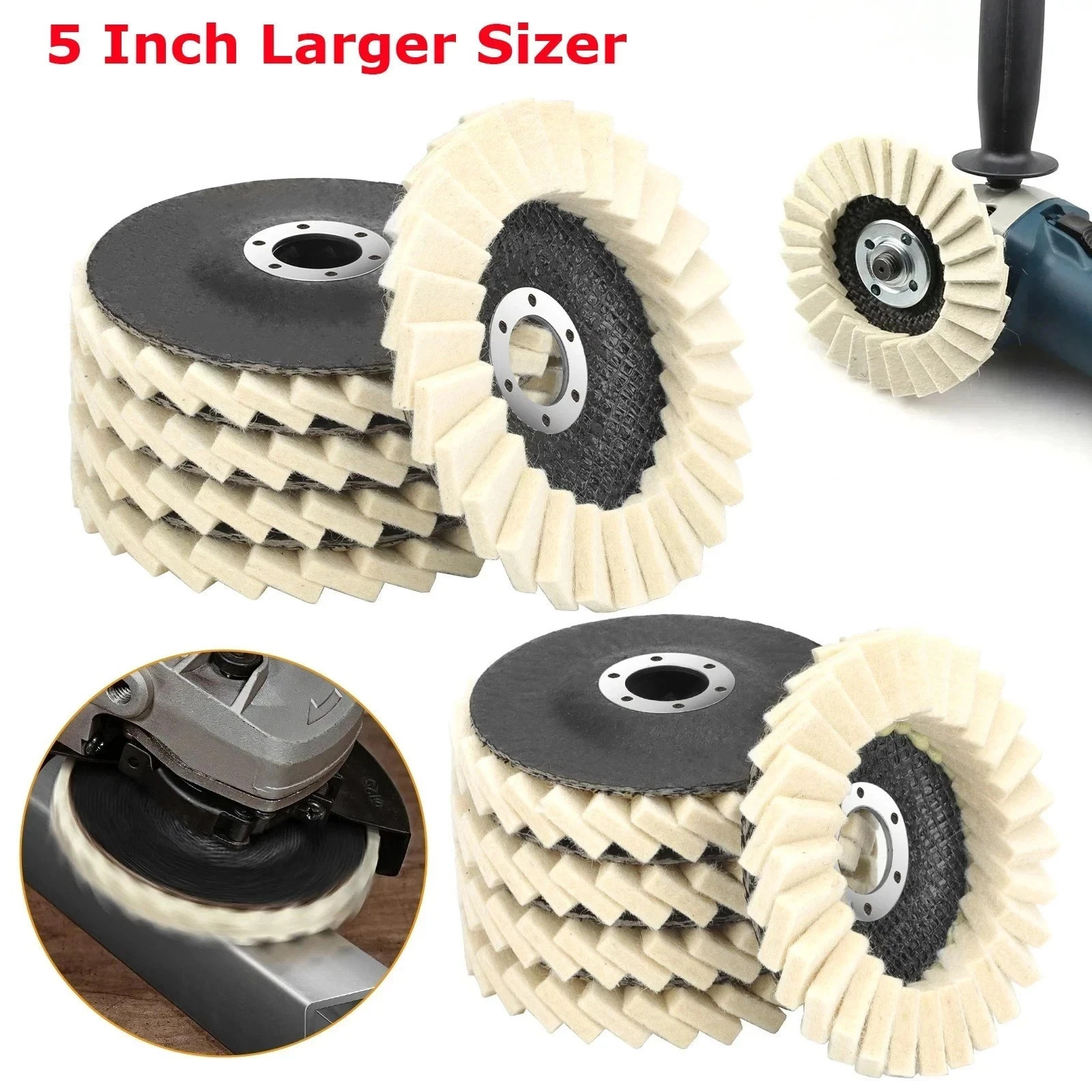 5pcs 4.5/5" Felt Flap Disc Wool Polishing Buffing Wheel Pad for Metal Stone Wood
