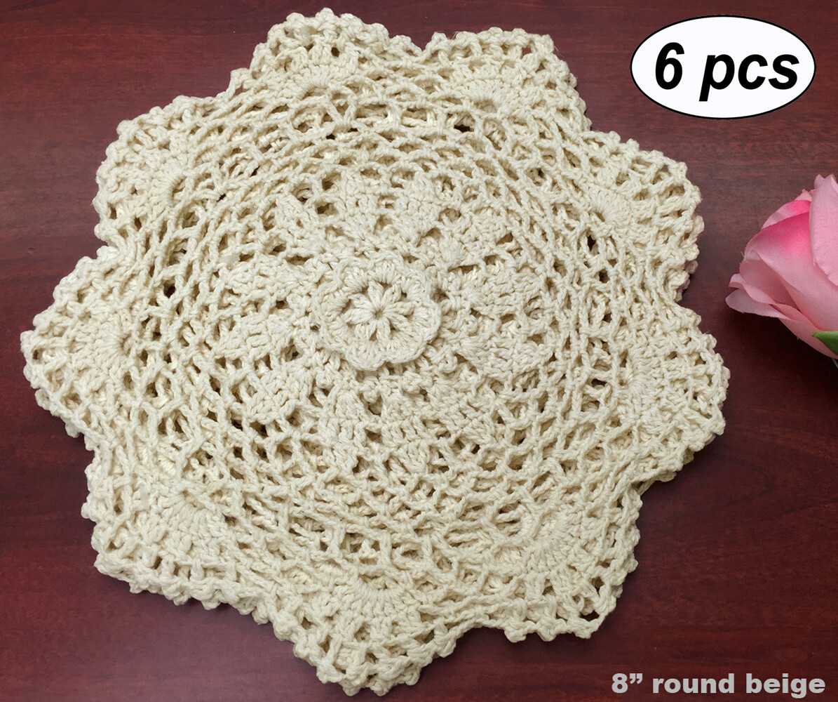 Creative Linens 6PCS 8" Round Beige Cotton Crochet Lace Doily Handmade
