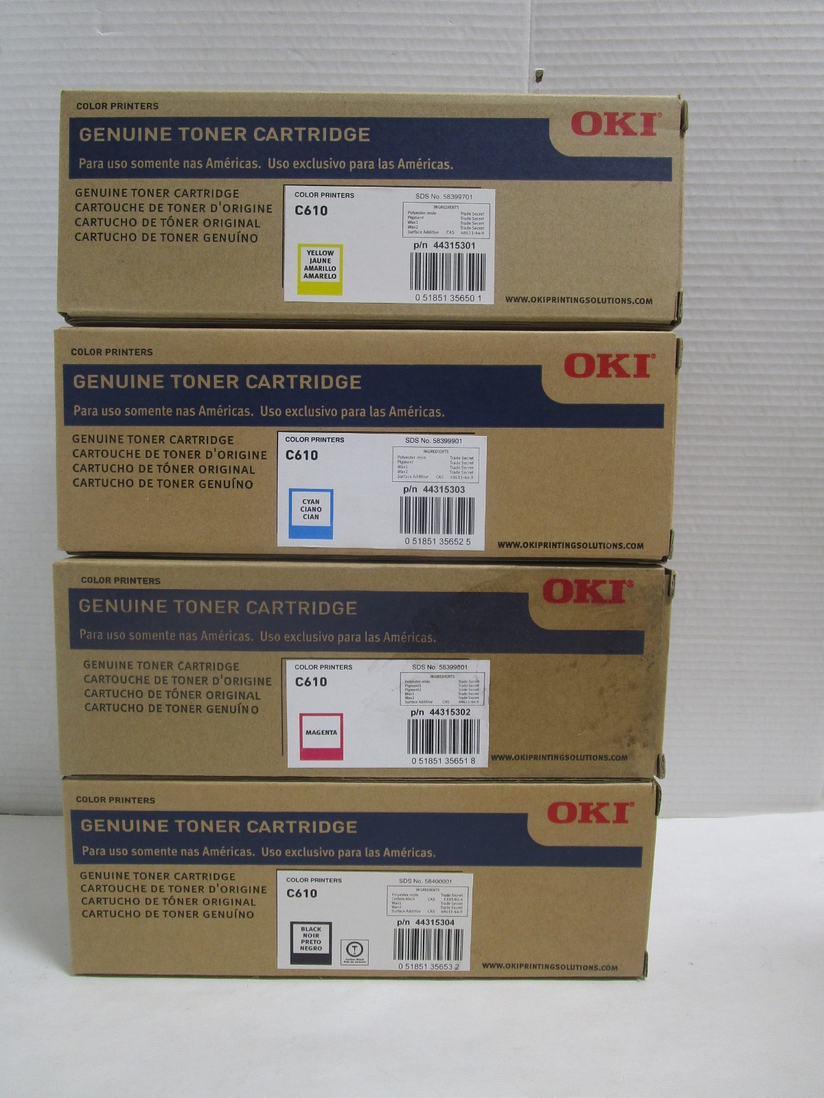OKI GENUINE TONER CARTRIDGE C610 LOT SET OF 4 44315303/301/302/304 NEW SEE PHOTO