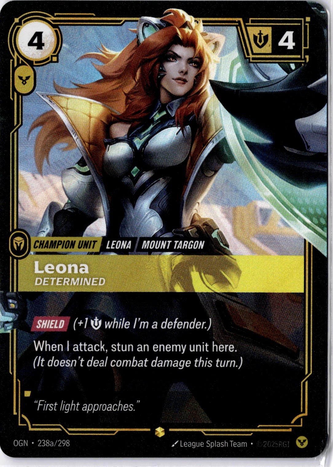 Leona - Determined (Alternate Art) Showcase from Origins, card number 238a/298 in NM condition.