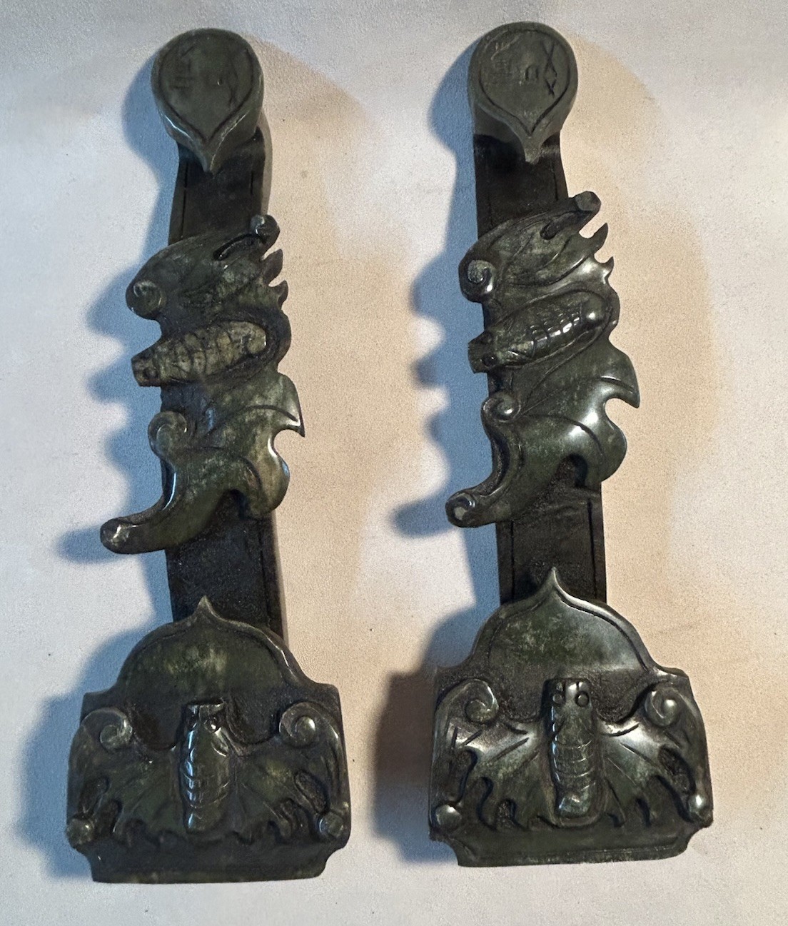 VTG Chinese Carved Green Stone Ruyi Sceptre Set Of 2