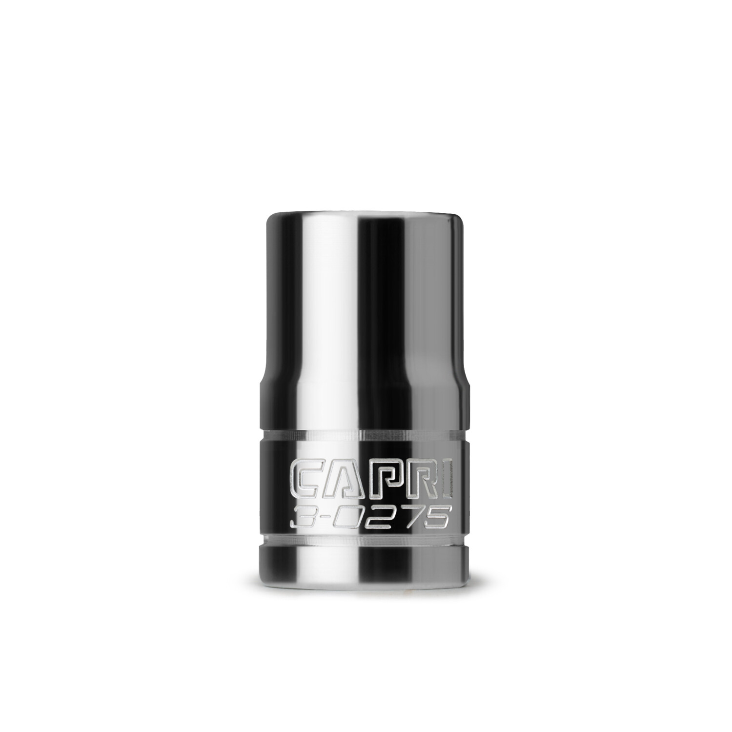 Trusted by professionals, the Capri Tools high performance sockets are what you need for the job at hand Premium Chrome Vanadium steel tempered with our proprietary heat treatment process to withstand more torque SmartKrome plating, achieved through thorough polishing and careful application of chrome protective plating, ensures durability and corrosion resistance WaveDrive design grips fasteners more tightly than traditional design, preventing fastener rounding and giving you more leverage Single external star socket: 1/4 in. drive: E4, E5, E6, E7, E8; 3/8 in. drive: E10, E12, E14, E16; 1/2 in. drive, E18, E20, E22, E24 Capri Tools high performance sockets are trusted by professionals for even the most demanding applications.