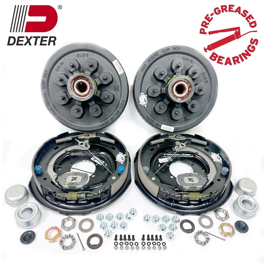 On sale • save 5%Dexter Pre-Greased 8 on 6-1/2" Hub-Drum with Dexter 12" x 2" Electric trailer brakes. Includes Dexter 023-464-00 & 023-465-00 Nev-R-Adjust electric brakes. Includes mounting hardware. These are fully assembled backing plates with shoes, springs, and magnets attached and ready to be mounted.