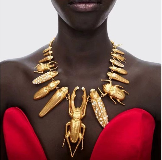 Schiaparelli Retro Diverse Insect Collection Gold Tone Necklace Clavicle Chain