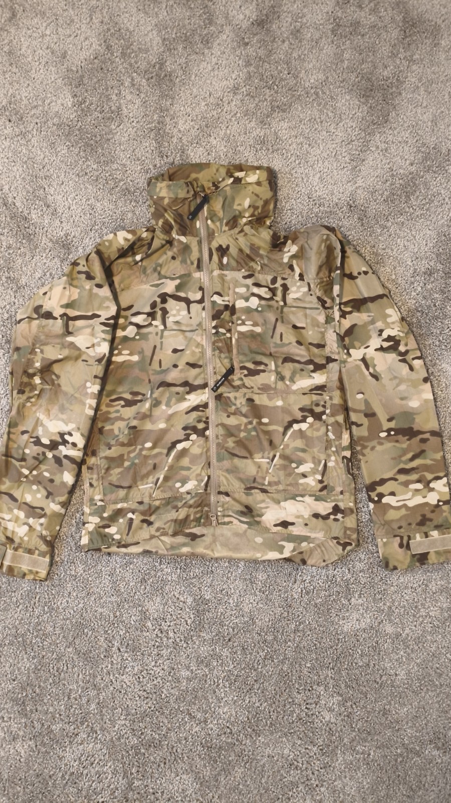BEYOND CLOTHING ultra lightweight bora windbreaker jacket. Camo Military Surplus. Has a hood that zips into collar. Chest pocket.