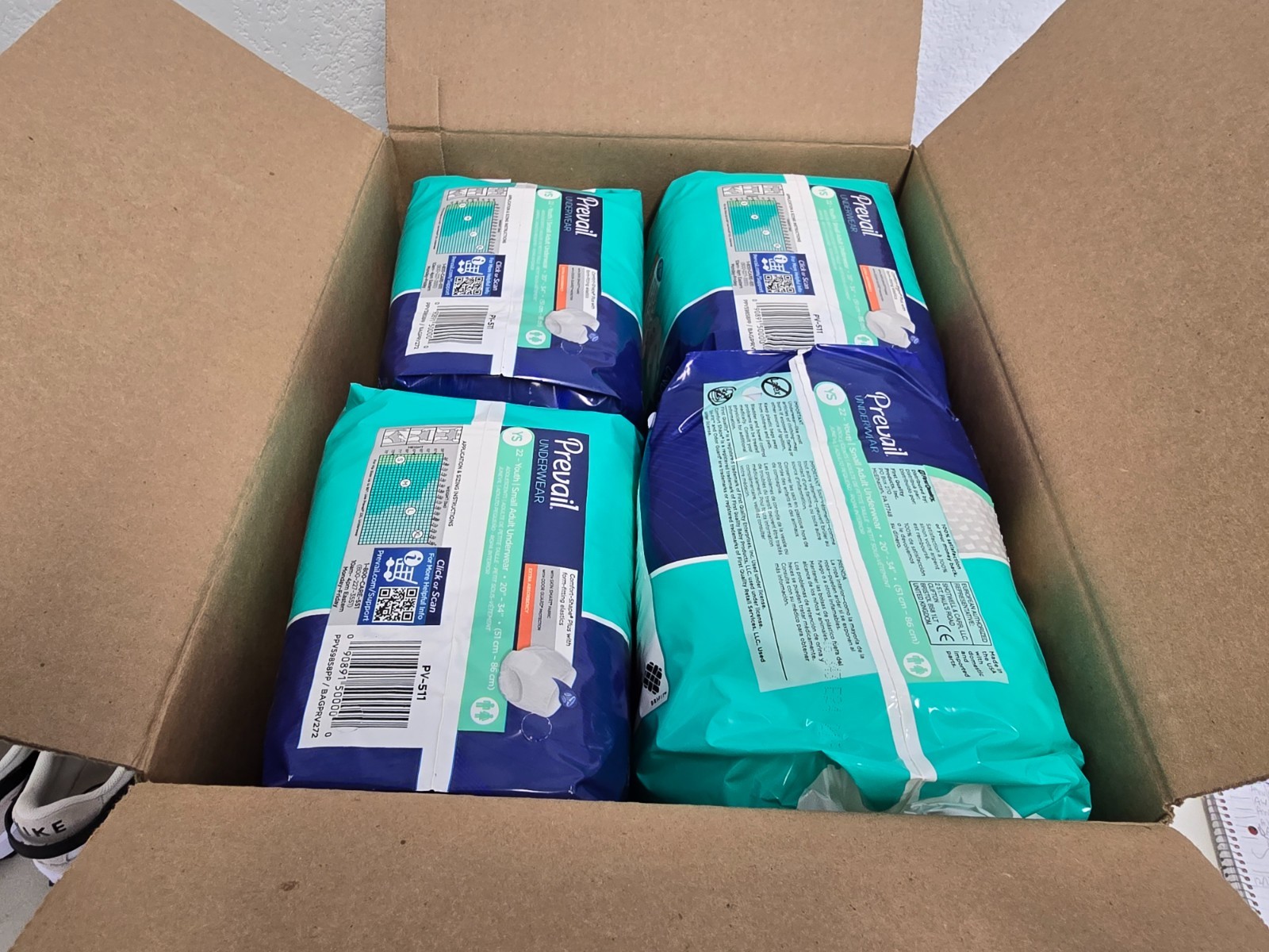 4 Pack 88 total Prevail Daily Underwear Extra Absorbency Youth/Small 20"-34"