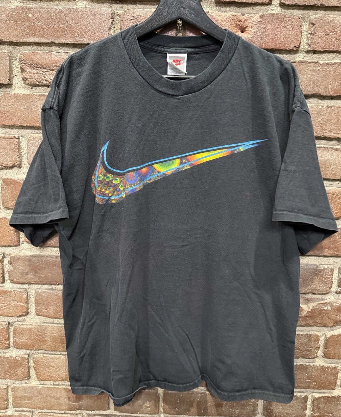 Vintage Nike Swoosh Fractal Art Shirt 90s Gray Tag Black Size XL