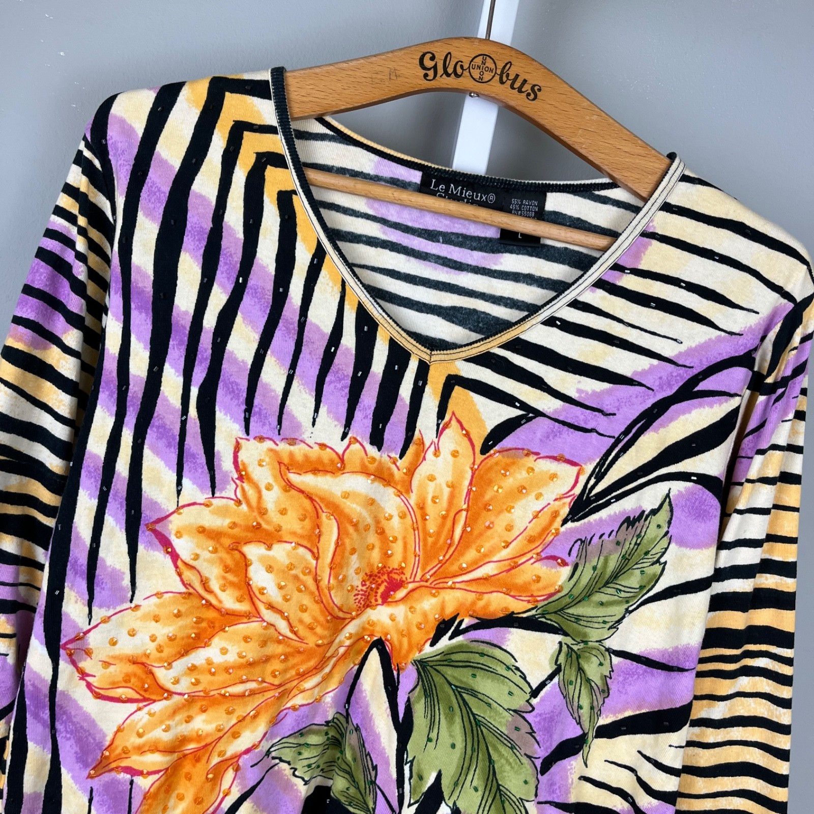 Vintage Y2K Le Mieux Studio Shirt Top Womens L Sequin Embellished Floral Cropped