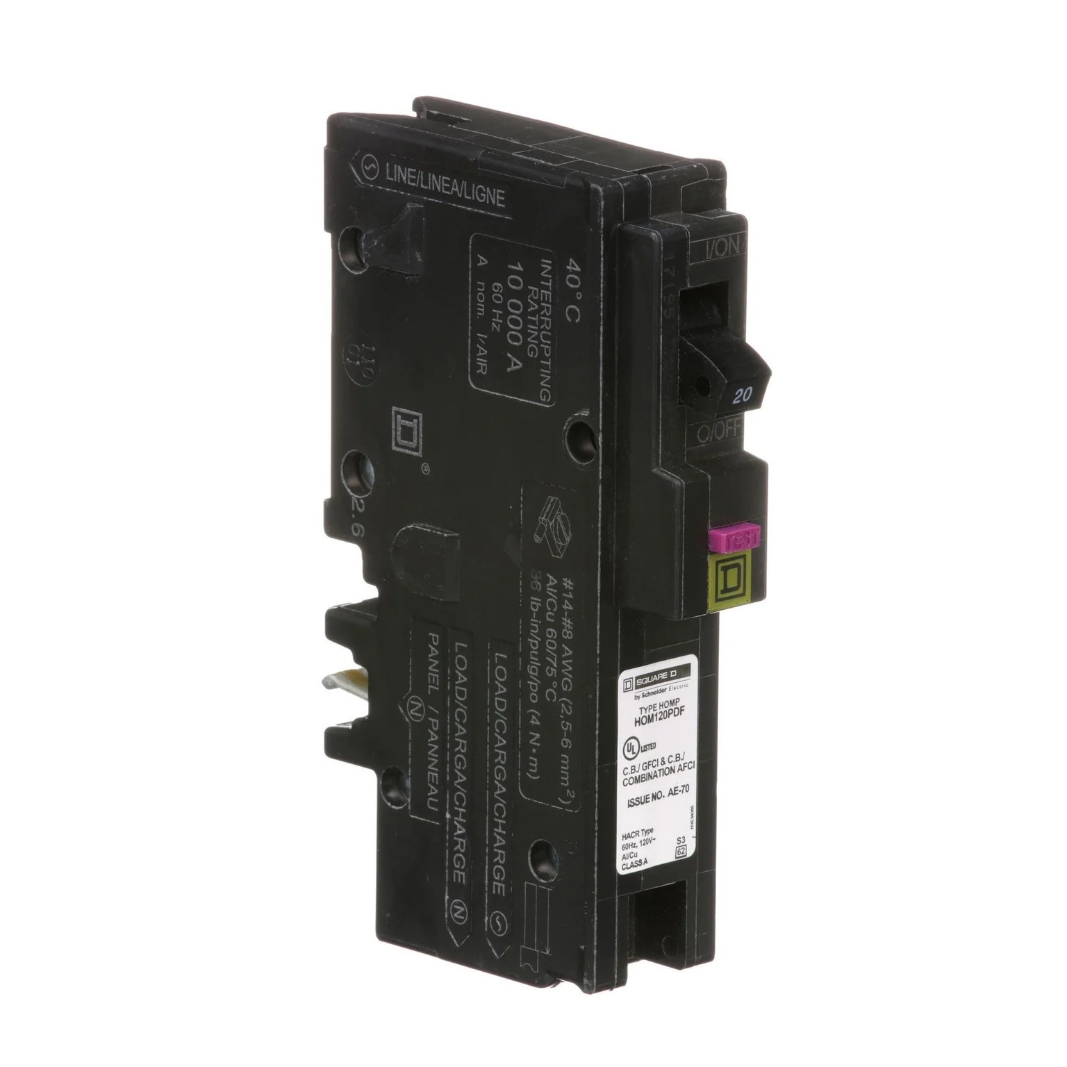 Square D HOM120PDF 120V 20A Single-Pole Circuit Breaker