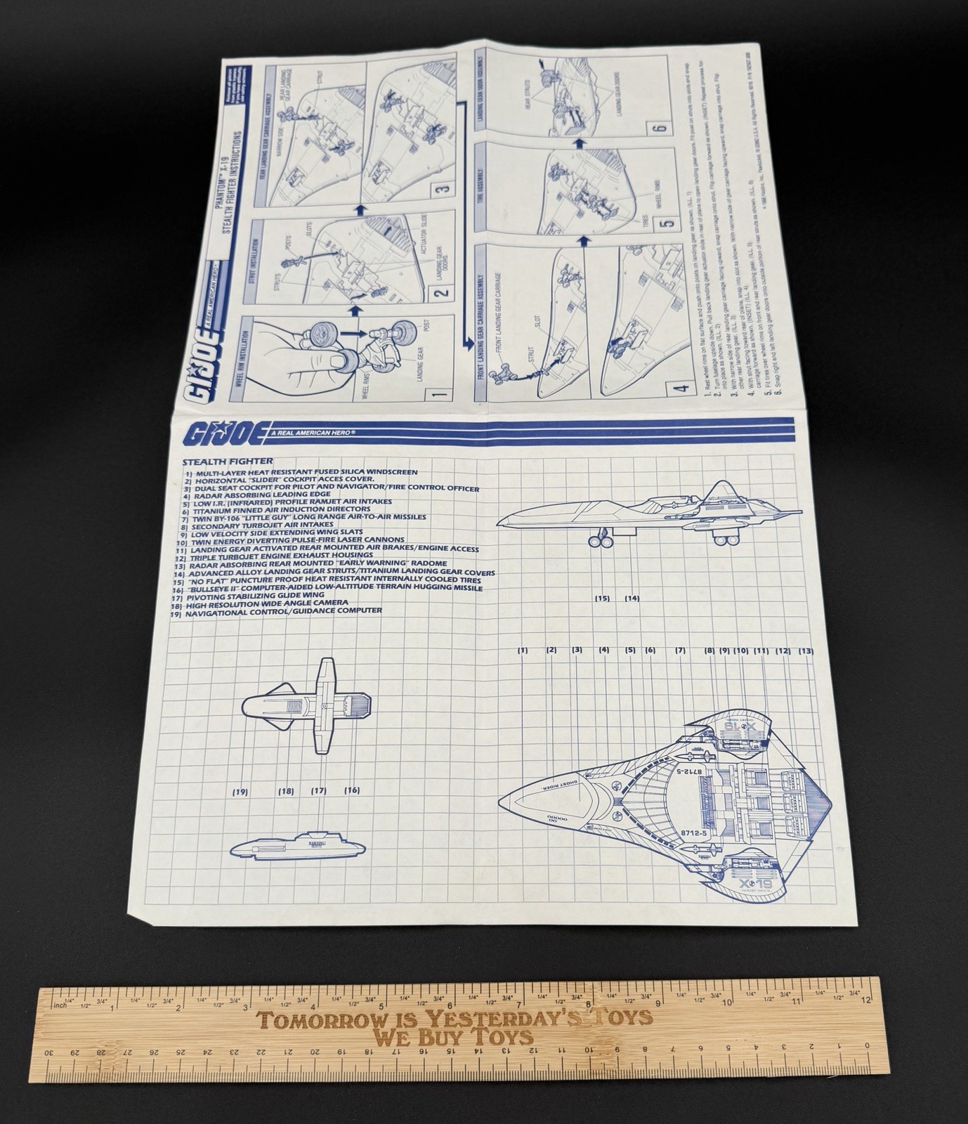 1988 GI Joe Stealth Fighter Phantom X-19 Instructions Blueprints Original