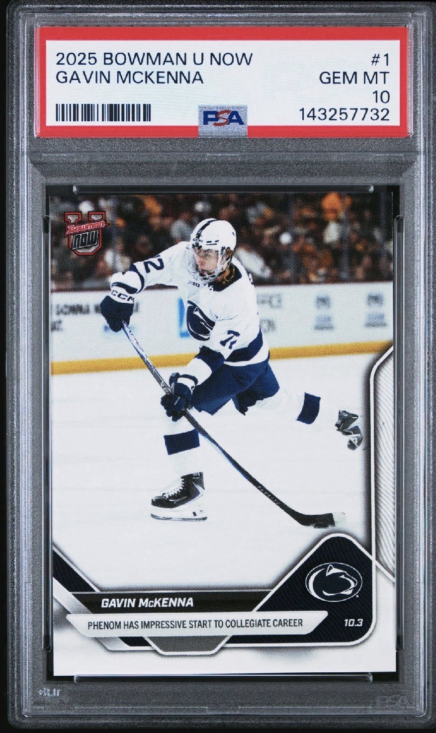 2025-26 Bowman University Now GAVIN MCKENNA #1 1st Game Rookie (RC) PSA 10