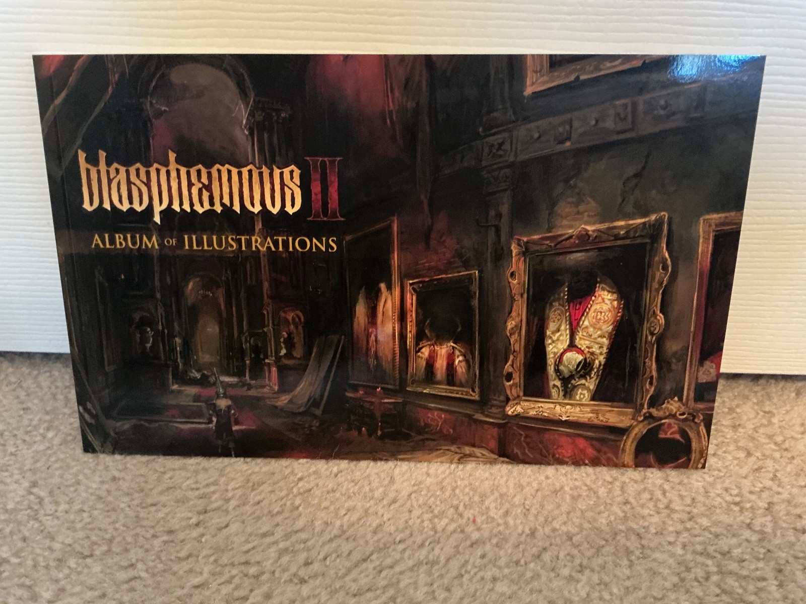 Brand New, unused Blasphemous 2 Official Album of Illustrations Artbook, English. Deluxe wide size format to give the large environmental art scenes a lot of presence and detail. Rare, hard to find, currently only listing on eBay.