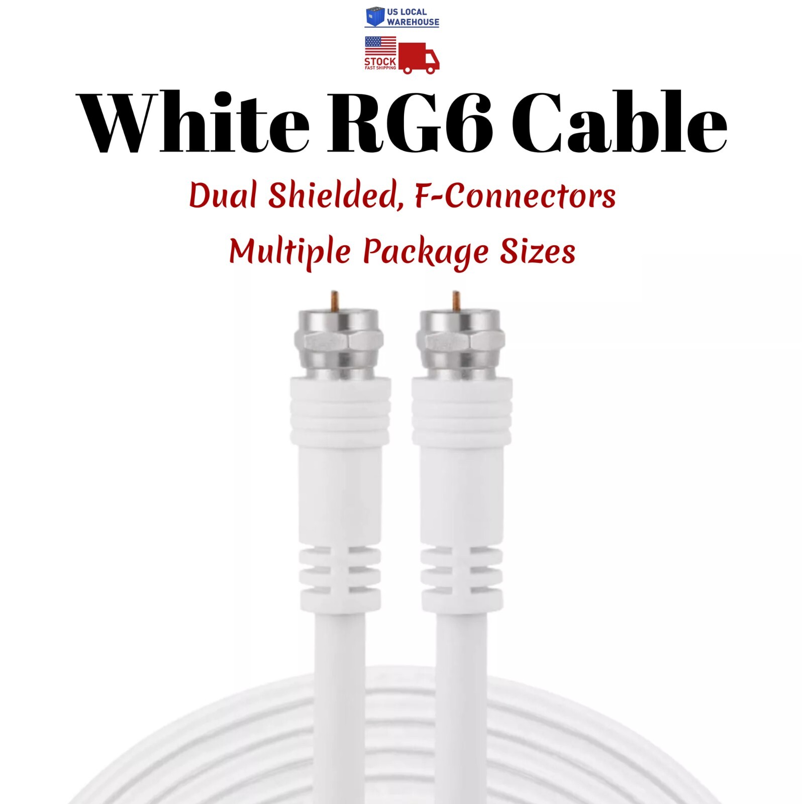 RG6 Coaxial Cable White Dual SHIELDED Satellite TV Antenna Wire Multi-Pack Lot