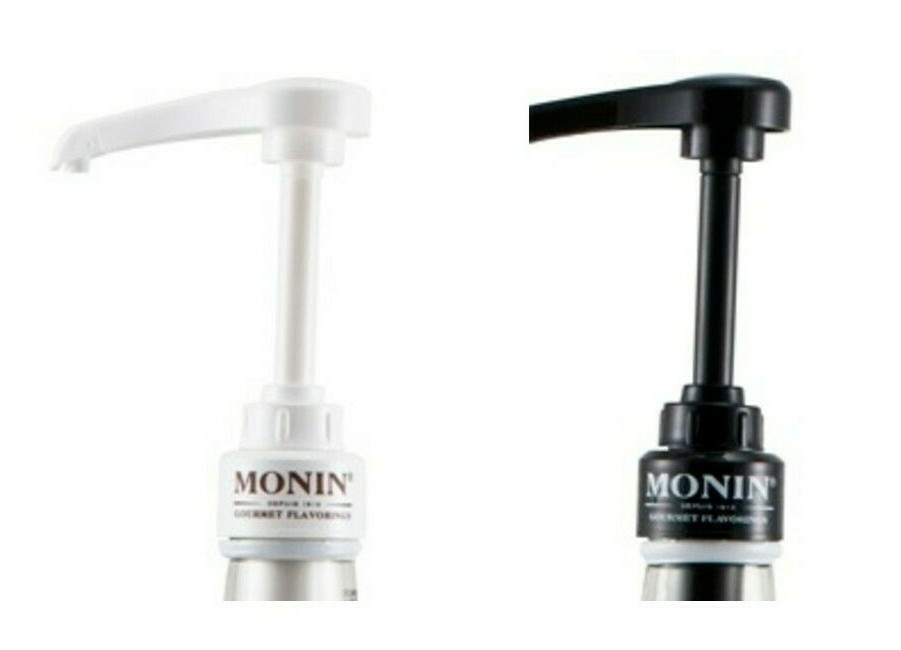 Monin 750 ml Syrup Pump - Black or White Syrup Pumps are made for Monin 750 ml glass bottles and are available in Black or White. They dispenses 1/4 oz of syrup per pump. PLEASE NOTE: This pump is only compatible with 750 ml glass bottles of Monin Syrup and may not fit other brands