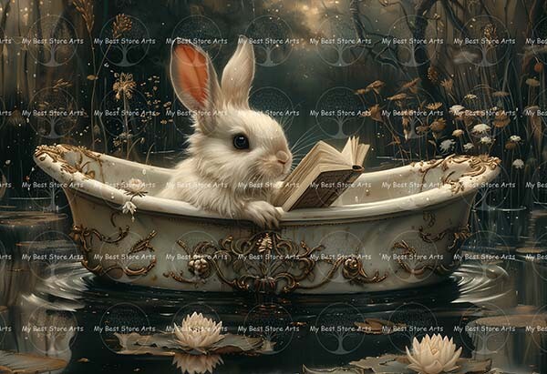 RABBIT IN A BATHTUB ART PRINT, Gothic Bunny Poster, Animal Decor, Fantasy D664