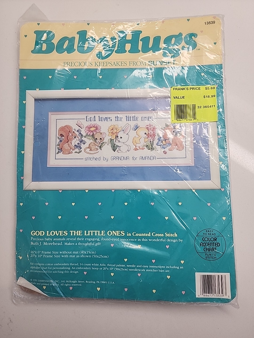 Vintage Sunset Baby Hugs God Loves the Little Ones Counted Cross Stitch Kit NEW