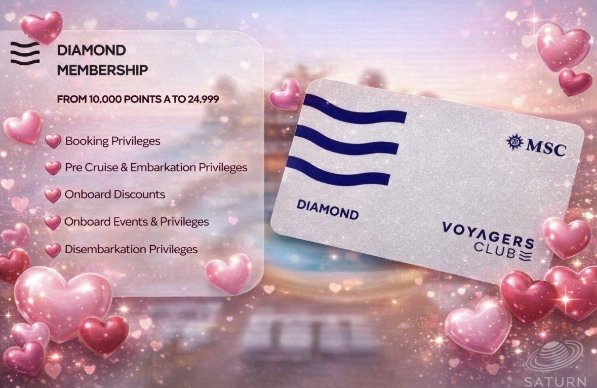 Get your MSC Voyagers Club Diamond . Don't wait: experience the luxury of MSC Cruises now! - No matter your current status, you will be taken directly to Diamond Level. To stay in the program, it is enough to take a cruise every 5 years.