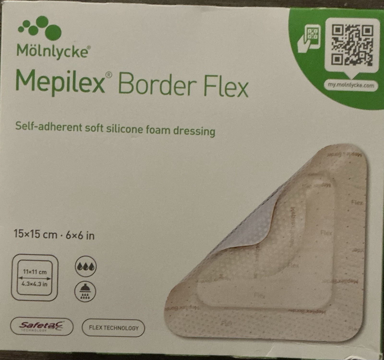 BRAND NEW / FACTORY SEALED Mepilex Border Flex Silicone Foam Dressing 6" x 6" #595400/New Expires 11/2027.