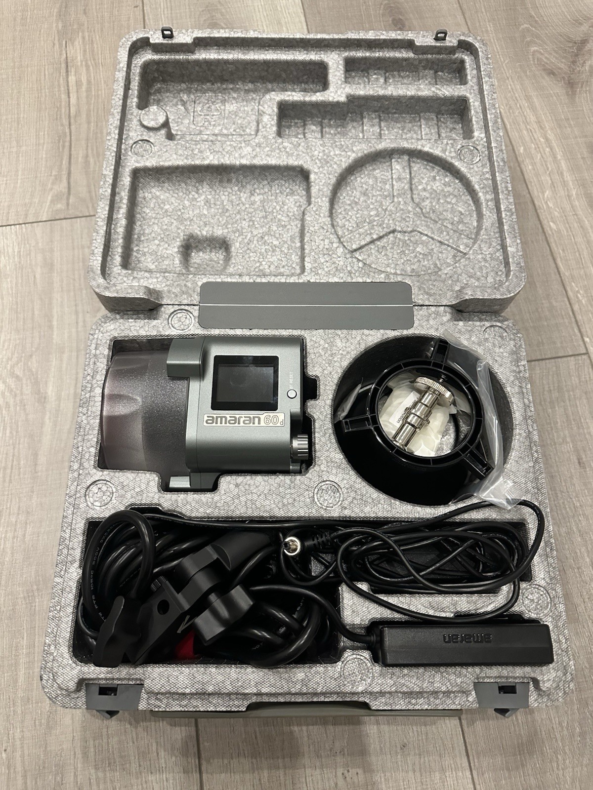 Up for sale is a great condition aperture 60 D daylight balanced COB light. Excellent condition, used inside for a podcasting studio includes all accessories shown.