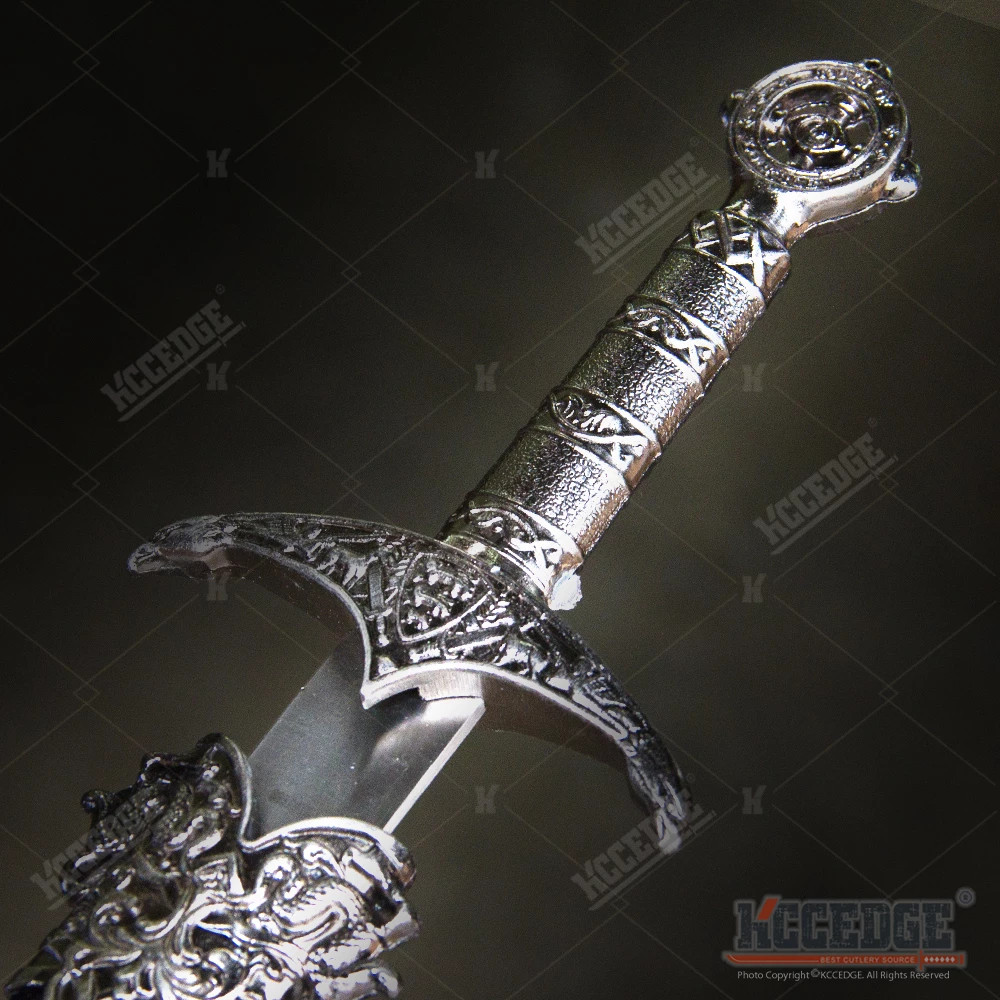 The blade of the dagger is 440 Stainless Steel with a short Ricasso and ridge. The sheath of the dagger is constructed from wood. The drag of the sheath is a decorated with a serpant. The Scabbard Throat is steel and fits seamlessly into the Guard.
