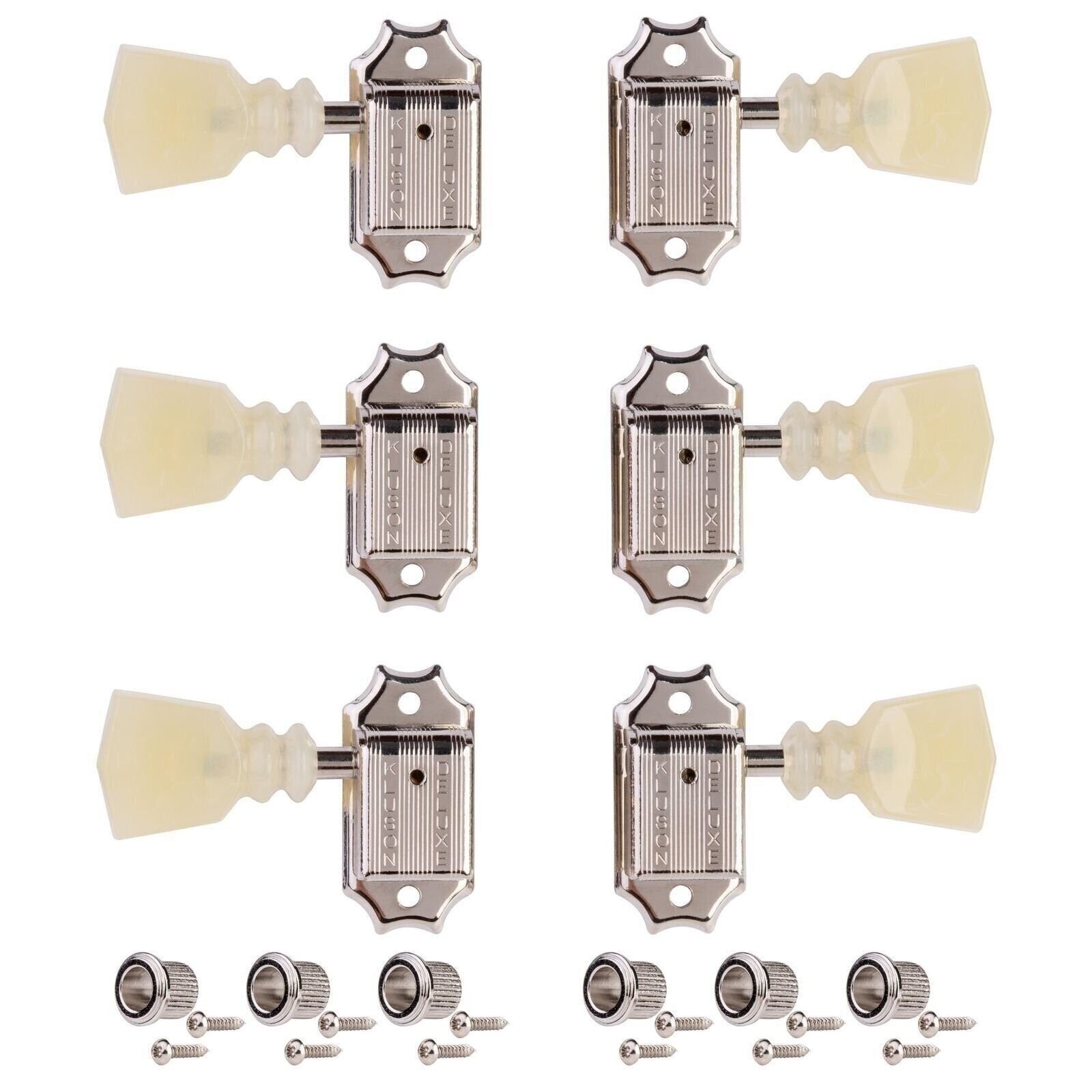 Kluson 3+3 Deluxe Series Tuners. A perfect reproduction of the classic Kluson keystone tuner. This complete Kluson set of 3 per side tuning machines is available with keystone buttons and a high quality gold or nickel plating with an improved 15:1 gear ratio for more stable and accurate tuning.