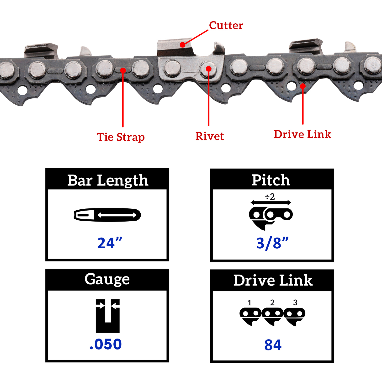 12" 14'' 16" 18" 20" 22" 24" in Chainsaw Chain Blade 325" 3/8"LP .058" 0.43" 050
