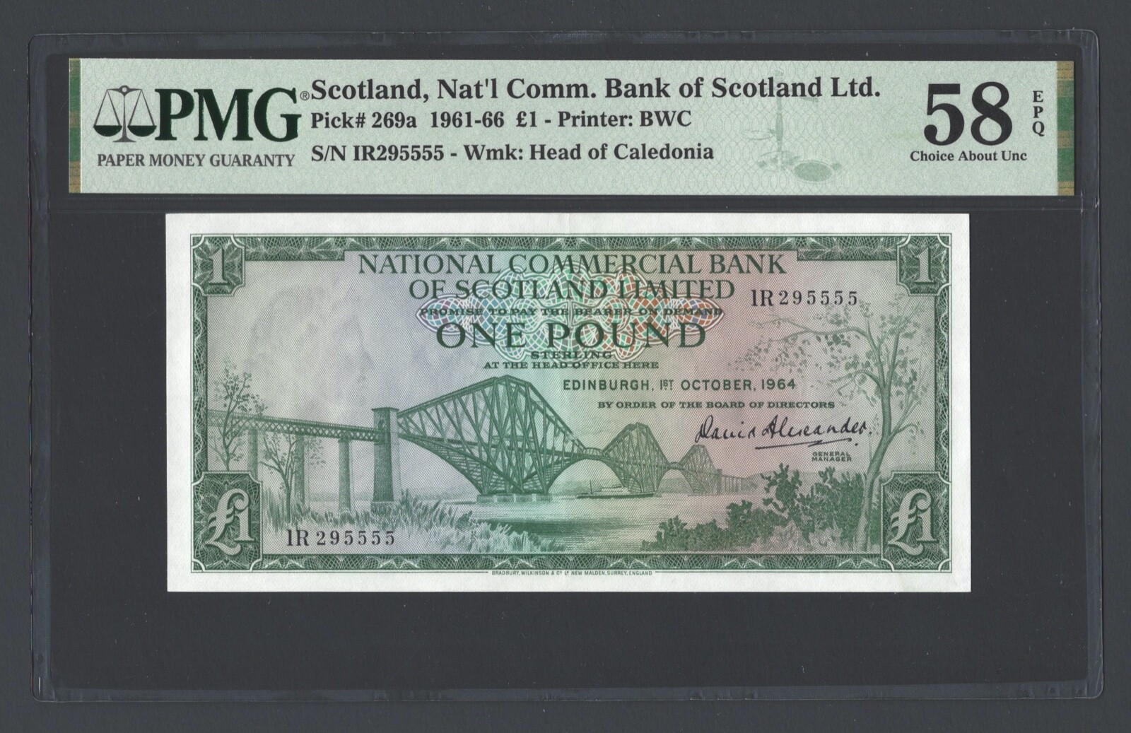 Scotland One Pound 1-10-1964 P269a "S/N 295555" About Uncirculated