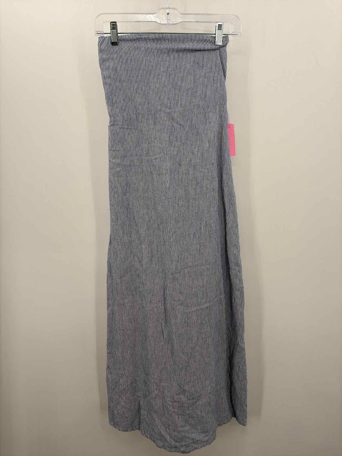 Pre-Owned Olivaceaous Blue Size Small Stripe Shift Midi Strapless Dress