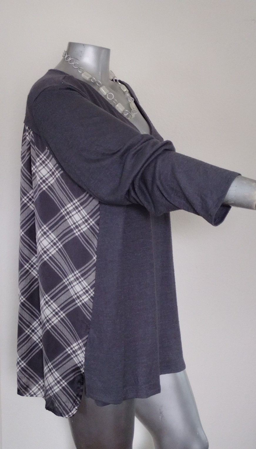 WOMAN EVRI TWO TEXTURES PULLOVER TOP BLOUSE TUNIC Size 4X Back Plaid Long Sleeve