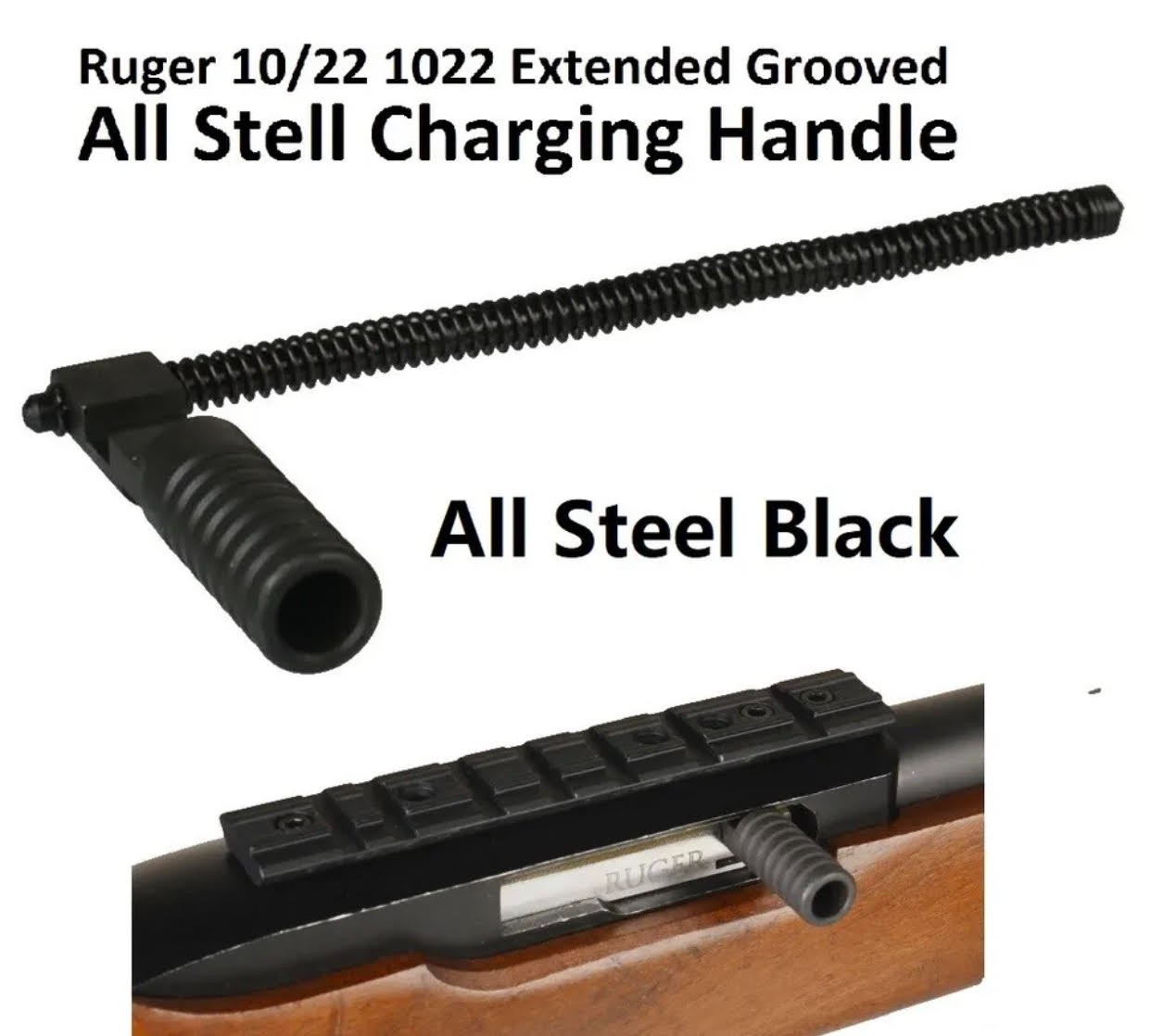 Steel Black Ruger 1022 10-22 Extended Grooved Round Charging Handle.
