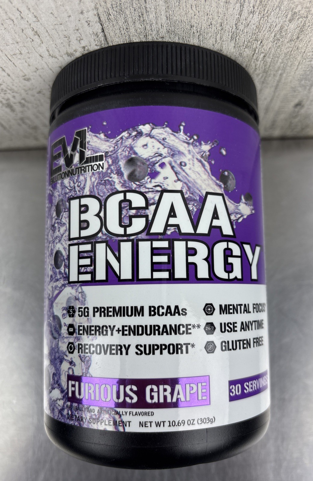 EVL Evlution Nutrition BCAA Energy Pre Workout Recovery Grape 30 Servs *01/2026*.
