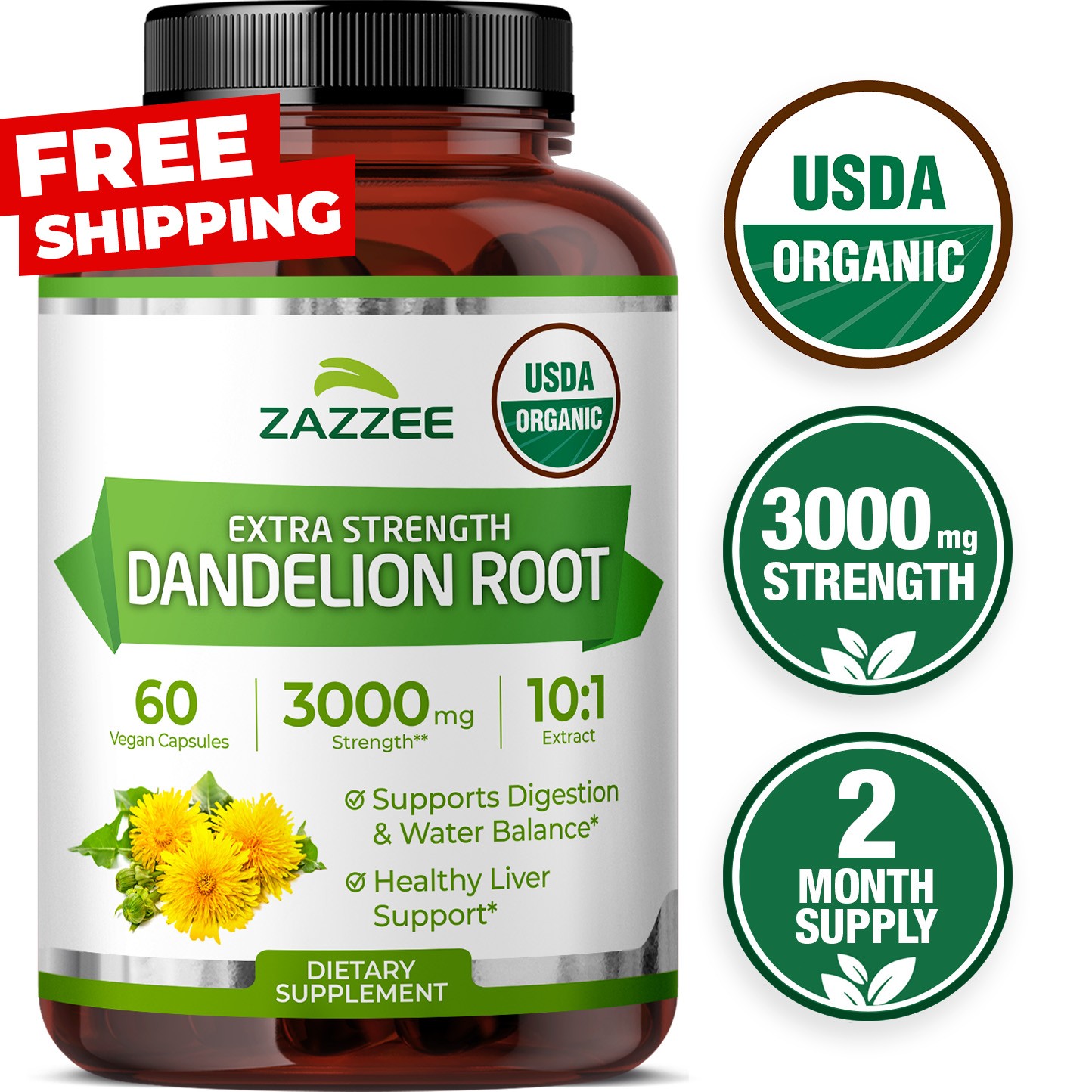 Zazzee USDA Organic Dandelion Root 10:1 Extract, 3000 mg Strength, 60 Capsules