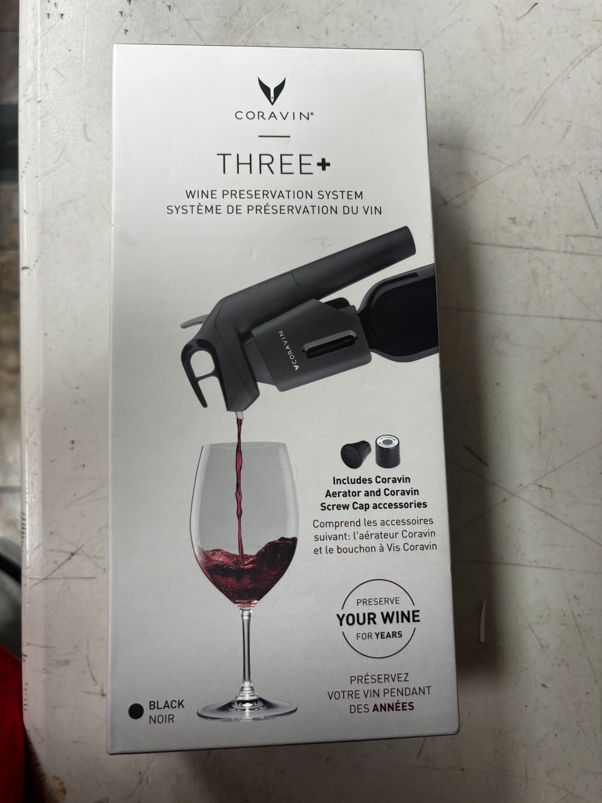 Coravin Three Plus Wine Preservation System, Black 112324B Three+ - NEW SEALED