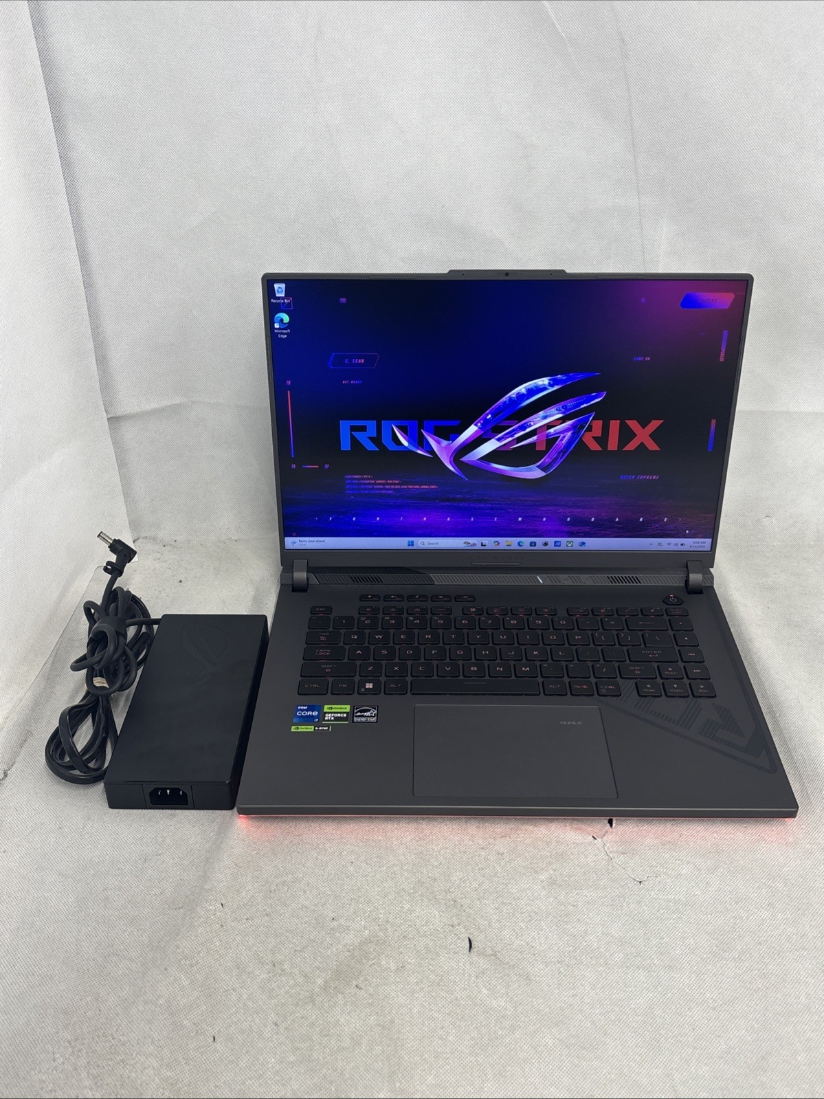 Asus Rog Strix G16 - Eclipse Gray 1TB - 13th Gen. Intel i7-13650HX Processor - 16GB Ram Windows 11 Home Installed NVIDIA GeForce RTX 4070 GPU Laptop is in fair overall cosmetic condition. Top of the case has a couple dents. All buttons, functions and features work as intended. Will be reset prior to shipping. Please contact us with any questions you may have before purchasing. Charger included. Battery health 86%.