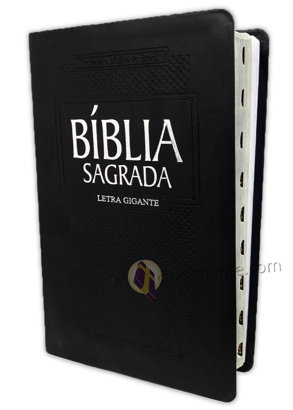 Bíblia Sagrada Almeida Revista e Atualizada, imitação de couro preto com índice