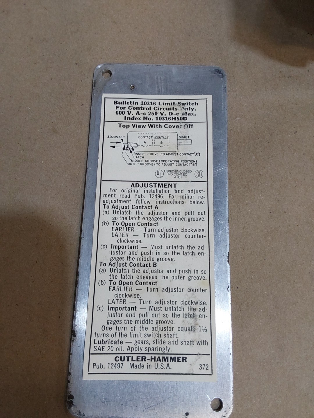 Cutler Hammer/Eaton 10316H50D Limit Switch